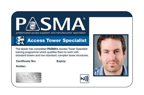 Access Tower Specialists are the most highly skilled PASMA operatives, qualified to build any type of tower. Their unique PASMA cards feature the CSCS logo, helping you to identify them easily.