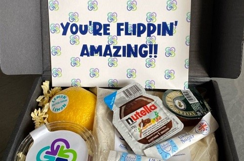 Pancake making kit box which CPP staff were sent as a thank you and for a Shrove Tuesday competition. Photograph: CPP