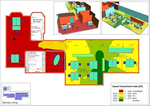 High noise levels in buildings can have a negative impact on workers’ performance and sense of wellbeing and make it harder to hear safety warning sounds and announcements. However, software is available and constantly evolving that can help designers of buildings achieve good acoustic conditions and acoustic comfort.