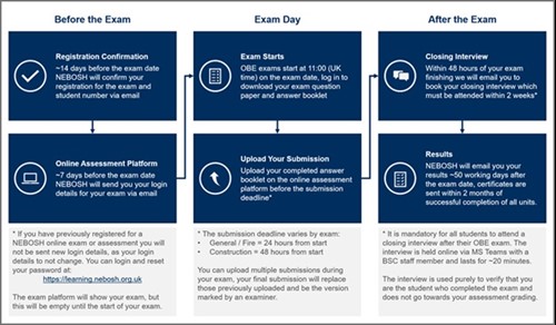You can check exam dates, prices and book your chosen NEBOSH OBE via the Learning Zone.