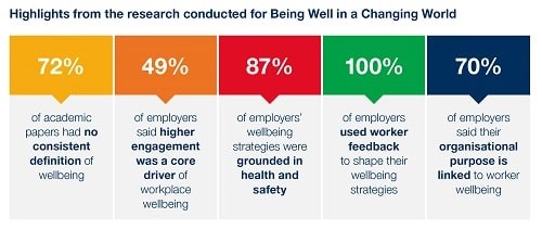 The research found that there is no consistent definition of wellbeing, despite most employers saying their organisational purpose is linked to worker wellbeing.