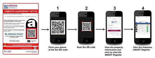 - Electronic or contractor sign-in processes can be adapted to access and view the latest register. Compliance is automatically established and recorded when the QR code is scanned or the hyperlink opened. The contractor confirms that they have read the register and will not undertake any works that might disturb the asbestos.