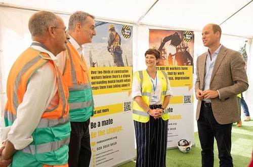 On Wednesday 13 September 2023, Prince William visited a construction site in west London where he met with Mates in Mind, Mace and representatives from across the construction industry, including an SME Mates in Mind Supporter, to discuss the prevalence of suicide in the industry, and highlight the crucial need to focus on prevention, rather than crisis management, when it comes to mental health support.